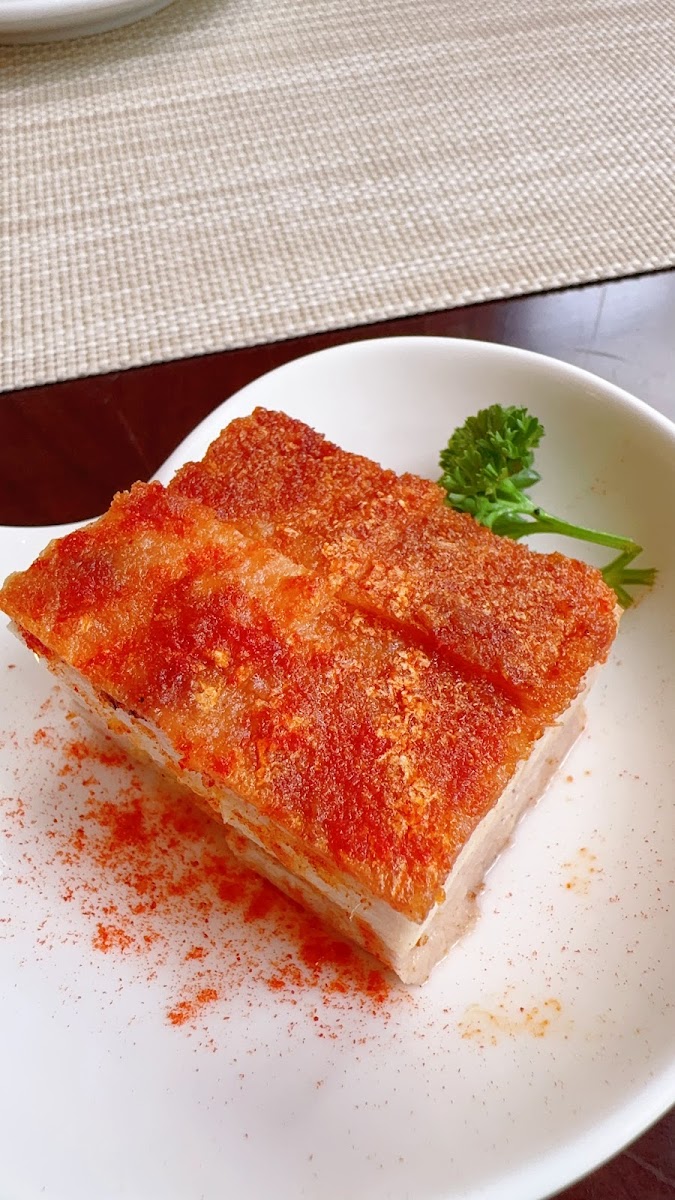 The Signature Dish "Lolly Pop" prawns with mayonnaise sauce is outstanding and the presentation truly memorable. The dish comes with 6 prawns but 4 disappeared before I could take a photo! Other incredible dishes we had were Golden crispy fish skin with salted egg yolk, Deep-fried five-spice silver cod, Marinated celtuce with pickled chill and Cantonese BBQ Roasted Duck. Thank you Chef Fei for a wonderful dining experience.